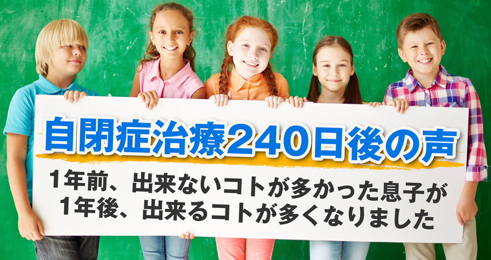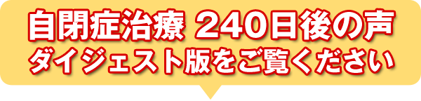 自閉症改善240日後の声 全編動画(約33分)を観られたいという方はコチラからご登録。動画URLをすぐに送らせて頂きます。 |